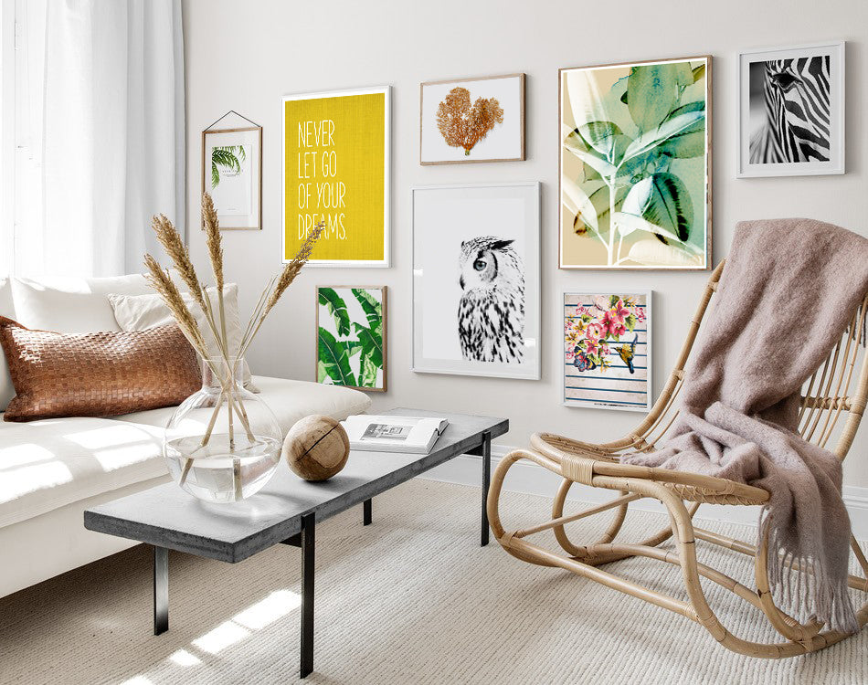 Cada uno de los productos que encontrarás en estos ambientes los podrás tener en tu propia casa, tal cual los vez en las imágenes o con una medida y enmarcado a pedido si tienes otra idea en mente.